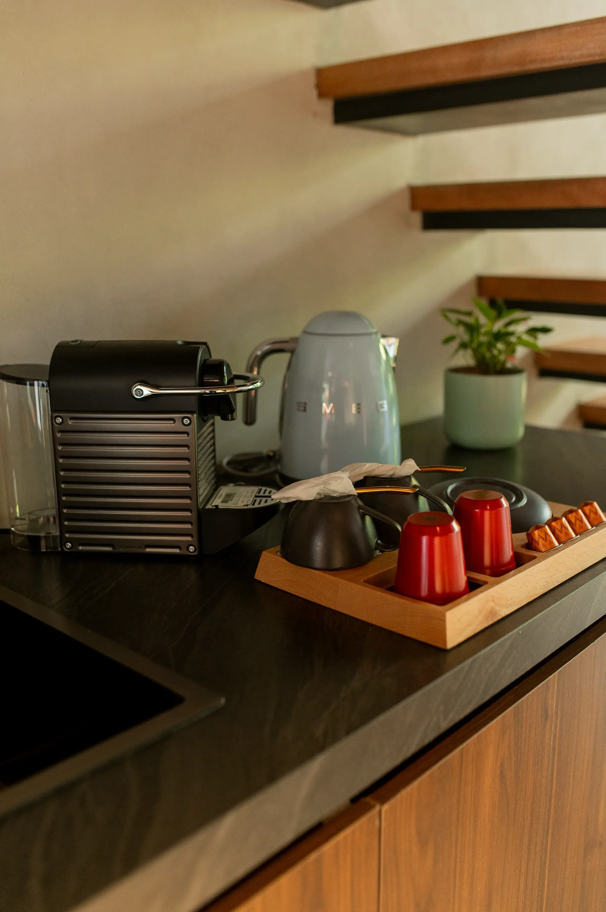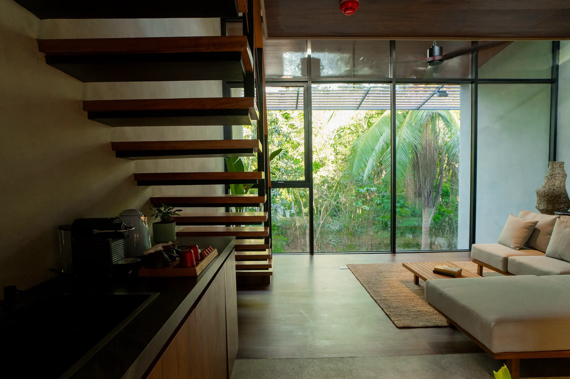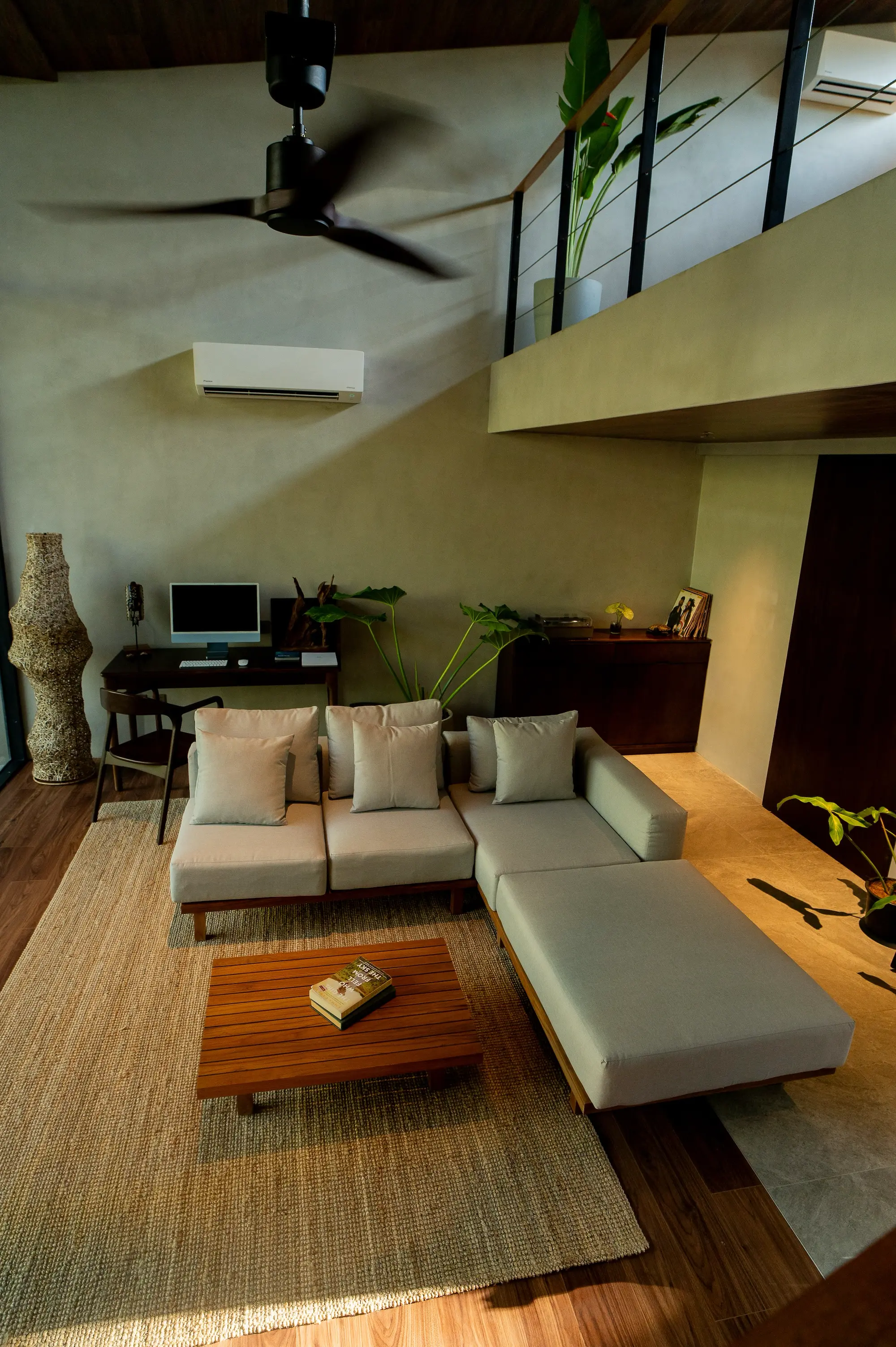 The Executive Loft offers a spacious and elegant environment with a focus on modern luxury and functional design. Perfect for guests seeking both comfort and sophistication, this loft features a unique raised sleeping area, providing a distinct separation between living and resting spaces. The expansive 3.7-meter-tall windows flood the space with natural light and offer stunning views, enhancing the overall ambiance. Ideal for business and leisure travelers alike, the Executive Loft ensures a truly refined and relaxing stay.